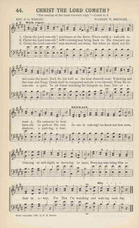 Author: Ernest G. W. Wesley Hymnal: The Cyber Hymnal #14317 Meter: 10.10.10.10 D First Line: Christ the Lord cometh? perchance at the dawn Lyrics: 1 Christ the Lord cometh? perchance at the dawn,