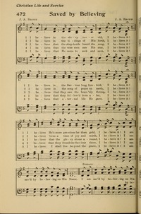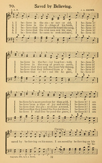 Author: J. A. B. Hymnal: The Gospel Hymn Book #70 (1903) First Line: I believe in the story never old Refrain First Line: I am saved by believing on his name Lyrics: 1 I believe in the story never old,