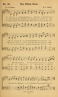 Author: R. G. Staples Hymnal: Onward and Upward No. 2 #163 (1900) First Line: No other refuge, Lord, have I Refrain First Line: The rifted Rock, the rifted Rock Languages: English Tune Title: [No other refuge, Lord, have I]