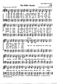 Author: Haldor Lillenas, 1885-1959 Hymnal: Revival Hymns and Choruses #256 (1970) First Line: The Bible stands like a rock undaunted Refrain First Line: The Bible stands tho the hills may tumble Lyrics: 1 The Bible stands like a rock undaunted