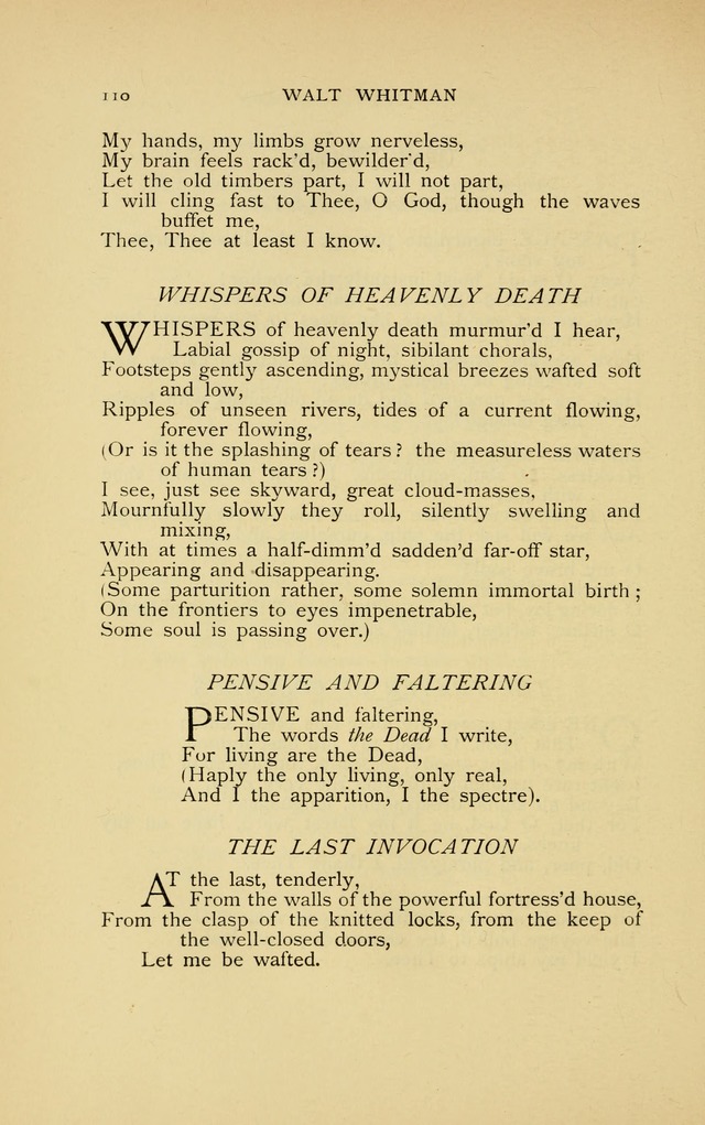 Display Title: The Last Invocation First Line: At the last, tenderly Author: Walt Whitman Date: 1896