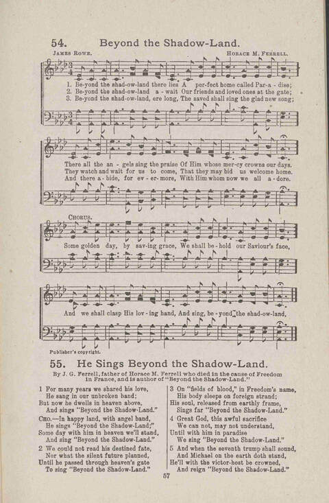 Display Title: Beyond The Shadow-Land First Line: Beyond the shadow-land there lies Tune Title: NOVOROSSIYSK Author: James Rowe Meter: LMD Source: Carol Crown by James D. Vaughan (Lawrenceburg, TN: James D. Vaughan, 1915)