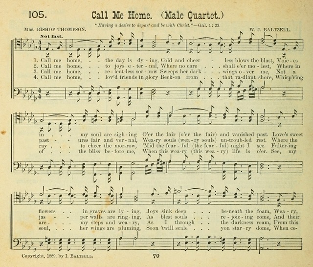 Display Title: Call Me HomeFirst Line: Call me home, the day is dyingTune Title: [Call me home, the day is dying]Author: Mrs. Bishop ThompsonDate: 1890