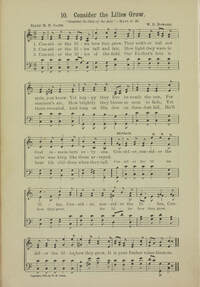 Display Title: Consider the Lilies GrowFirst Line: Consider the lilies how they growTune Title: [Consider the lilies how they grow]Author: Ellen M. H. GatesDate: 1899