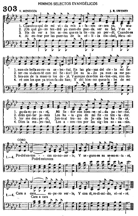 Display Title: He De Ver A JesúsFirst Line: Cuando aquí de mi vidaTune Title: [Cuando aquí de mi vida]Author: V. MendozaScripture: 1 John 3:2Date: 1949