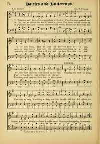 Display Title: Daisies and ButtercupsFirst Line: Daisies and buttercups sparkling with dewTune Title: [Daisies and buttercups sparkling with dew]Author: E. E. HewittDate: 1895