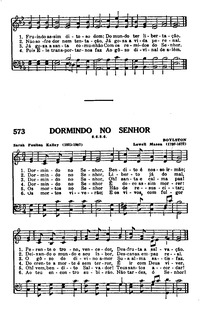 Display Title: Dormindo no Senhor First Line: Dormindo no Senhor Tune Title: DORMINDO NO SENHOR Author: Margaret Mackay; Sarah Poulton Kalley Scripture: Isaiah 26:19; Revelation 14:13 Date: 2016 Subject: Morte e Sepultamento |