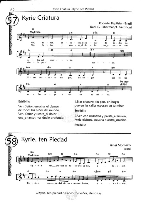 Display Title: Kyrie CriaturaFirst Line: Esas criaturas sin pan, sin hogarTune Title: [Esas criaturas sin pan, sin hogar]Author: G. Oberman; J. Gattinoni; Roberto BaptistaDate: 2010Source: Brasil