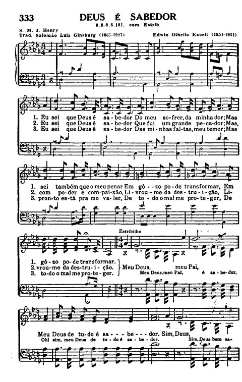 Display Title: Eu sei que Deus é sabedor First Line: Eu sei que Deus é sabedor Tune Title: HERR JESU CHRIST, DICH ZU UNS WEND Author: Salomão Luiz Ginsburg, 1867-1927; Sarepta M. I. Henry Scripture: Romans 8:28 Date: 2016 Subject: Cruz, Consolo y Esperança |