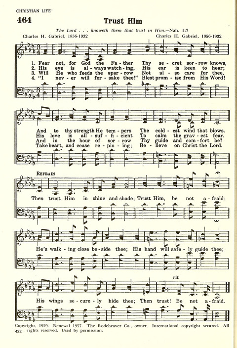Display Title: Trust HimFirst Line: Fear not, for God the FatherTune Title: [Fear not, for God the Father]Author: Charles H. Gabriel, 1856-1932Date: 1959