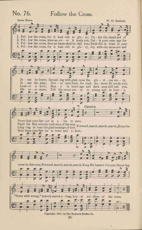Display Title: Follow the CrossFirst Line: Follow the cross, for it leadeth to gloryTune Title: [Follow the cross, for it leadeth to glory]Author: James RoweDate: 1911
