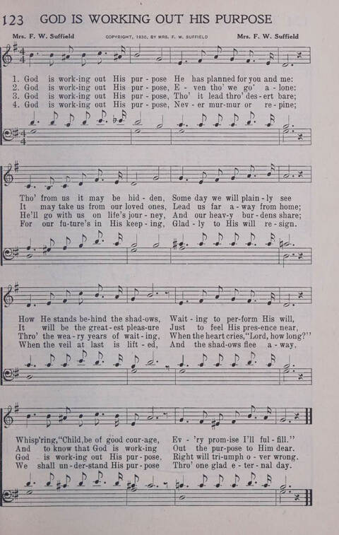 Display Title: God Is Working Out His PurposeFirst Line: God is working out His purposeTune Title: [God is working out His purpose]Author: Mrs. F. W. SuffieldDate: 1930