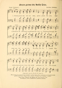 Display Title: Green Grows the Holly TreeFirst Line: Green grows the holly treeTune Title: [Green grows the holly tree]Author: Lady LindsayDate: 1919Subject: Christmas |