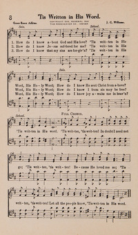 Display Title: 'Tis Written in His WordFirst Line: How do I know about God and His love?Tune Title: [How do I know about God and His love?]Author: Grace Reese AdkinsDate: 1916