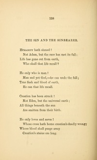 Horatius Bonar was born at Edinburgh, in 1808. His education was obtained at the High School, and the University of his native city. He was ordained to the ministry, in 1837, and since then has been pastor at Kelso. In 1843, he joined the Free Church of Scotland. His reputation as a religious writer was first gained on the publication of the "Kelso Tracts," of which he was the author. He has also written many other prose works, some of which have had a very large circulation. Nor is he less favorably known as a religious poet and hymn-writer. The three series of "Hymns of Faith and Hope," have passed through several editions.