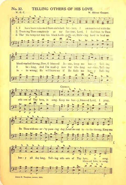 Display Title: Telling Others of His LoveFirst Line: I have been redeemed from sin's dark fettersTune Title: [I have been redeemed from sin's dark fetters]Author: W. O. C.Date: 1926