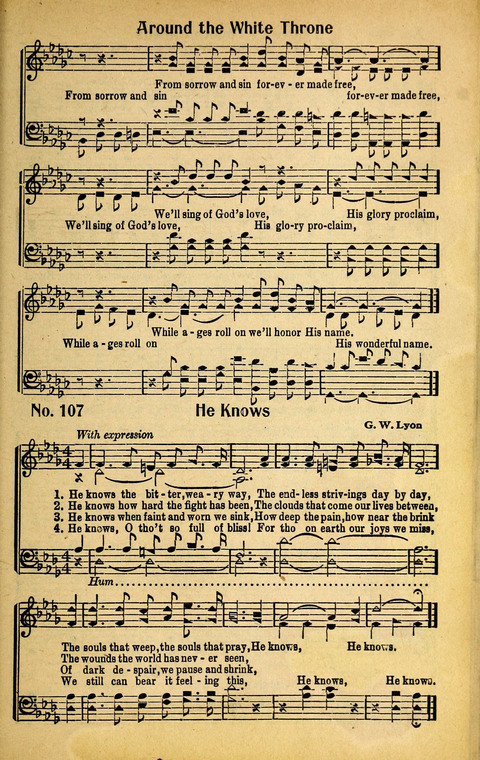 Display Title: Around the White ThroneFirst Line: I'm glory land bound with Jesus my KingTune Title: [I'm glory land bound with Jesus my King]Author: T. J. F.Date: 1947