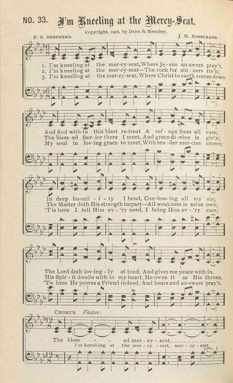 First Line: I'm kneeling at the mercy seat, Where Jesus answers prayer