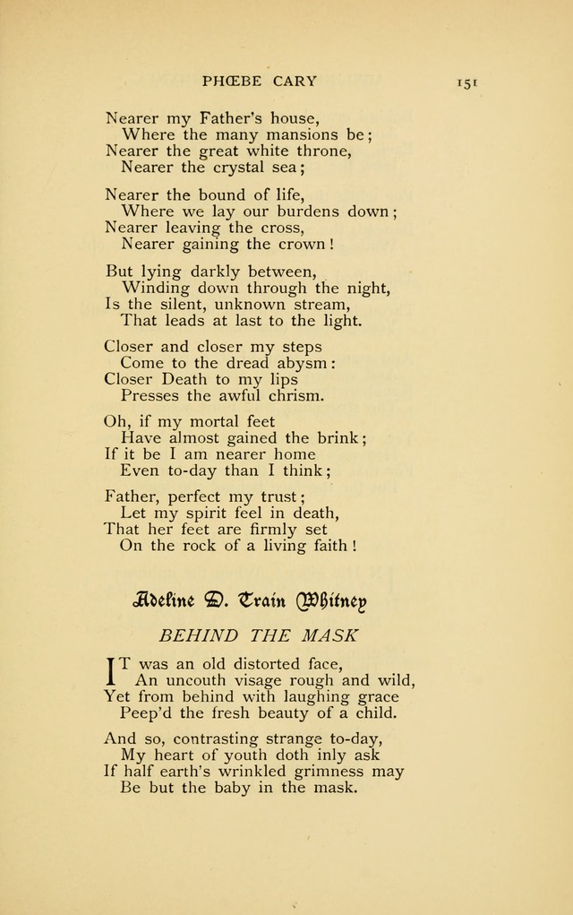 Display Title: Behind the mask First Line: It was an old distorted face Author: Adeline D. Train Whitney Date: 1896
