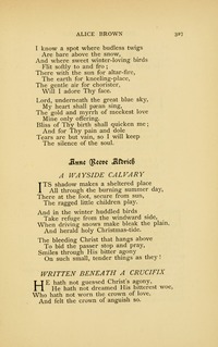 Miss Anne Reeve Aldrich, poet and novelist, born in New York City, 25th April, 1866. From her earliest childhood she showed a fondness for composition, spending hours from the time she learned to print in writing stories and verses, although she had the usual healthy childish tastes for romping and all out-of-door sports. At the death of er father, which occurred in her eighth year, her mother removed to the country, where she at first took charge of her daughter's education, which was afterward carried on by competent tutors. Miss Aldrich displayed remarkable proficiency in composition and rhetoric, which was cuonterbalanced by what she herself calls an amusing inaptitude for mathematics, so that, while she was translating French and Latin…