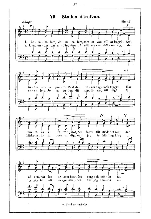 Display Title: Staden därofvanFirst Line: Jerusalem, Jerusalem, som ofvantill är byggdtTune Title: [Jerusalem, Jerusalem, som ofvantill är byggdt]Date: 1891