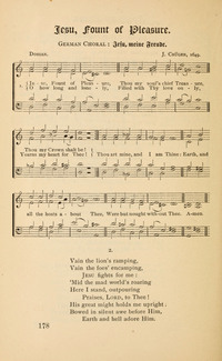 Johann Crüger (PHH 42) composed JESU, MEINE FREUDE, a bar form tune (AAB) written for this text. Johann S. Bach (PHH 7) incorporated the tune into his cantatas 12, 64, 81, and 87 and composed a beautiful motet and several organ preludes on the melody.
