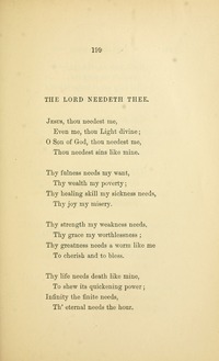 Horatius Bonar was born at Edinburgh, in 1808. His education was obtained at the High School, and the University of his native city. He was ordained to the ministry, in 1837, and since then has been pastor at Kelso. In 1843, he joined the Free Church of Scotland. His reputation as a religious writer was first gained on the publication of the "Kelso Tracts," of which he was the author. He has also written many other prose works, some of which have had a very large circulation. Nor is he less favorably known as a religious poet and hymn-writer. The three series of "Hymns of Faith and Hope," have passed through several editions.