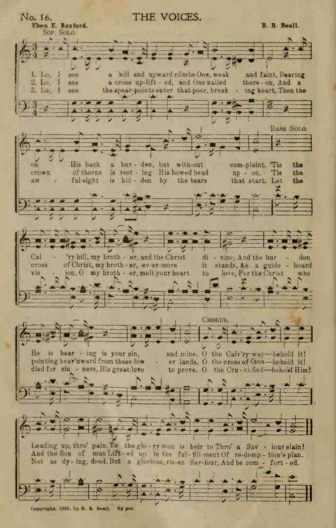 Display Title: The VoicesFirst Line: Lo, I see a hill and upward climbsTune Title: [Lo, I see a hill and upward climbs]Author: Eben E. RexfordDate: 1930