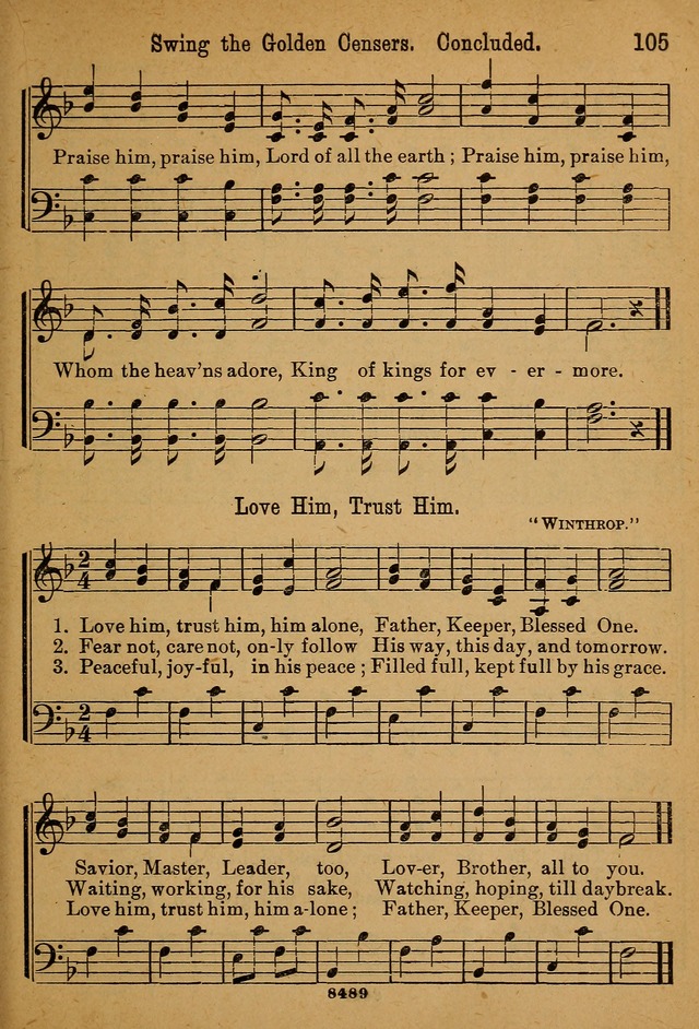 Little Sacred Songs: for Little Singers of the primary department of the Sunday school, and for Kindergartens and the home (1892), p.105