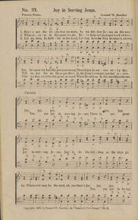 Display Title: Joy in Serving JesusFirst Line: Many are the trials that we meetTune Title: [Many are the trials that we meet]Author: Francis FosterDate: 1920