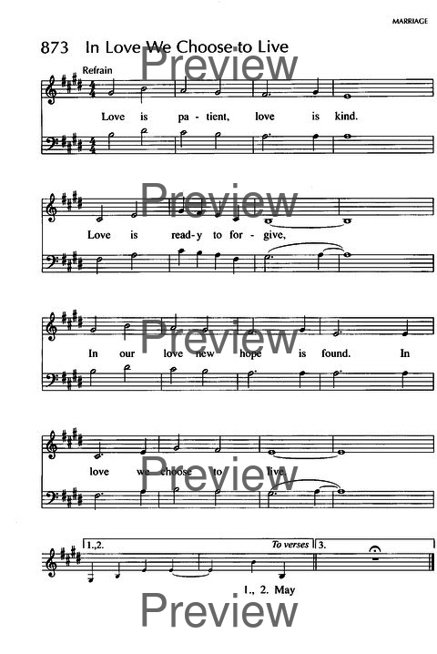 Display Title: In Love We Choose to Live First Line: May love be our home; rest to soothe tired bones Tune Title: [May love be our home] Author: Jeanne Cotter, b. 1964 Scripture: 1 Corinthians 13 Date: 1994 Subject: Patience | ; Rites of the Church | Marriage