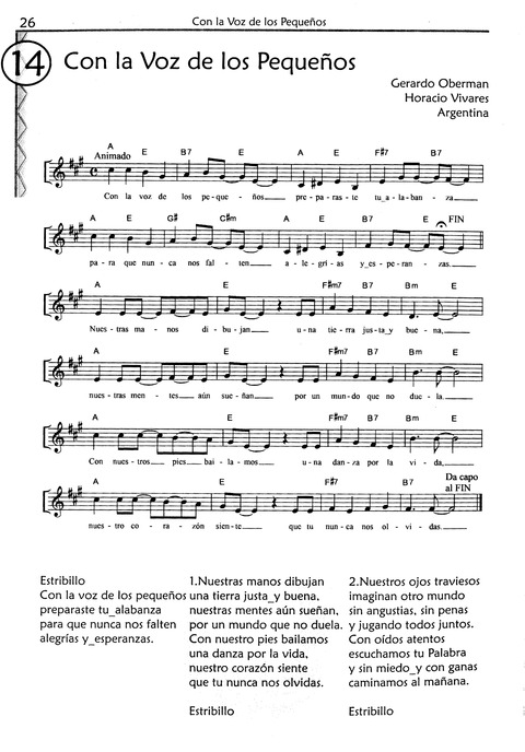 Display Title: Con la Voz de los PequeñosFirst Line: Nuestras manos dibujanTune Title: [Nuestras manos dibujan]Author: Gerardo Oberman; Horacio VivaresDate: 2010Source: Argentina