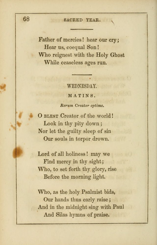 Edward Caswall was born in 1814, at Yately, in Hampshire, where his father was a clergyman. In 1832, he went to Brasenose College, Oxford, and in 1836, took a second-class in classics. His humorous work, "The Art of Pluck," was published in 1835; it is still selling at Oxford, having passed through many editions. In 1838, he was ordained Deacon, and in 1839, Priest. He became perpetural Curate of Stratford-sub-Castle in 1840. In 1841, he resigned his incumbency and visited Ireland. In 1847, he joined the Church of Rome. In 1850, he was admitted into the Congregation of the Oratory at Birmingham, where he has since remained. He has published several works in prose and poetry.