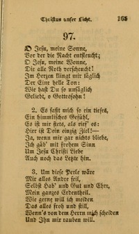 O Jesu, meine Sonne. C. J. P. Spitta. [Love to Christ.] A beautiful hymn on Jesus as the daily help and life of His faithful people. First published in Spitta's Psalter und Harfe, Pirna, 1833, p. 69, in 8 stanzas of 8 lines entitled, “Life and full satisfaction in Jesus." Included in Knapp's Unverfälschter Liedersegen, 1850, No. 1445 (1865, No. 1507). Translated as:-