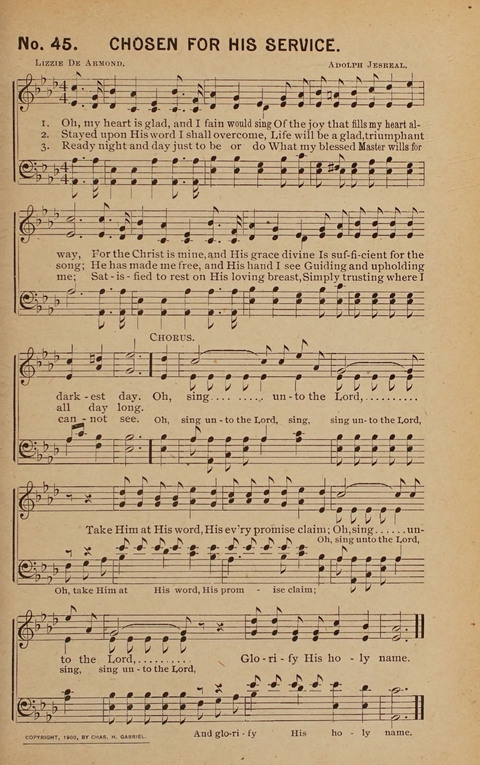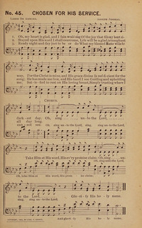 Display Title: Chosen for His ServiceFirst Line: O my heart is glad, and I fain would singTune Title: [O my heart is glad, and I fain would sing]Author: Lizzie DeArmondDate: 1900