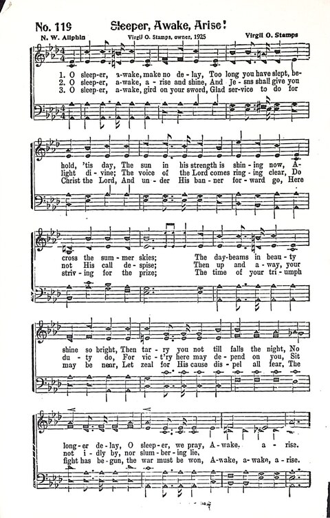 Display Title: Sleeper, Awake, AriseFirst Line: O sleeper, awake, make no delayTune Title: [O sleeper, awake, make no delay]Author: N. W. AllphinDate: 1925