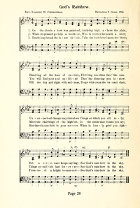 Display Title: God's RainbowFirst Line: On the clouds a bow was paintedTune Title: [On the clouds a bow was painted]Author: Rev. Leander M. ZimmermanDate: 1942