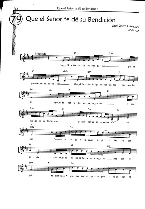 Display Title: Que el Señor te dé su Bendición First Line: Que el Señor te dé su bendición Tune Title: [Que el Señor te dé su bendición] Author: Joel Sierra Cavazos Date: 2010 Source: México