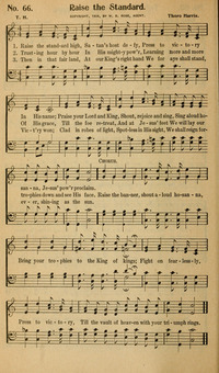 First Line: Raise the standard high, Satan's host defy