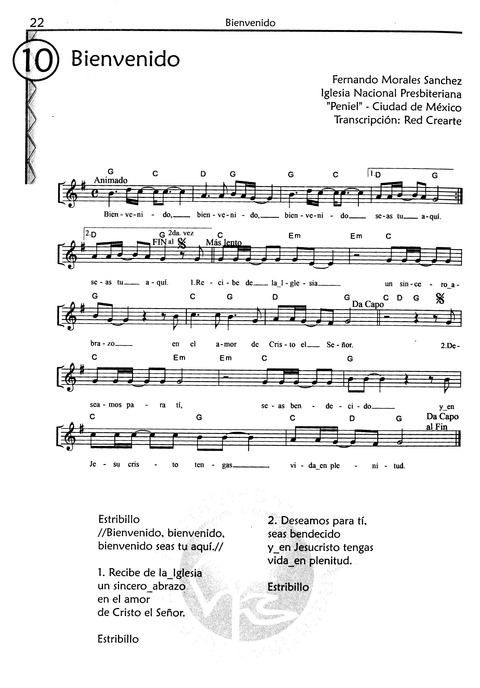 Display Title: Bienvenido First Line: Recibe de la Iglesia Tune Title: [Recibe de la Iglesia] Author: Fernando Morales Sanchez; Red Crearte Date: 2010 Source: "Peniel" - Ciudad de México; Iglesia Nacional Presbiteriana