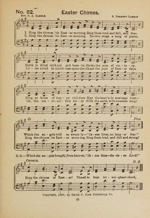 Display Title: Easter ChimesFirst Line: Ring the chimes, 'tis Easter morningTune Title: [Ring the chimes, 'tis Easter morning]Author: Mrs. S. A. GambleDate: 1908