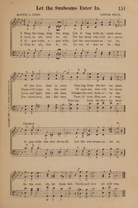 Display Title: Let the Sunbeams Enter inFirst Line: Sing the song, sing the songTune Title: [Sing the song, sing the song]Author: Mattie Alice LongDate: 1902