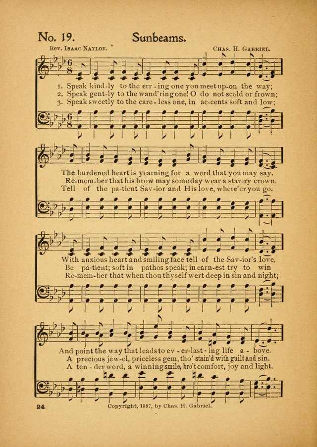 Sunbeams, sunbeams, scatter them day by day;