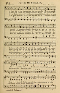 Display Title: Pure as the Streamlet First Line: Thank God for the fountains, the life-giving rills Tune Title: [Thank God for the fountains, the life-giving rills] Author: E. E. Hewitt Date: 1902 Subject: Temperance and Reform |