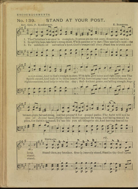 Display Title: Stand at Your PortFirst Line: The Christian's armor is completeTune Title: [The Christian's armor is complete]Author: Rev. Geo. F. RobertsonDate: 1891