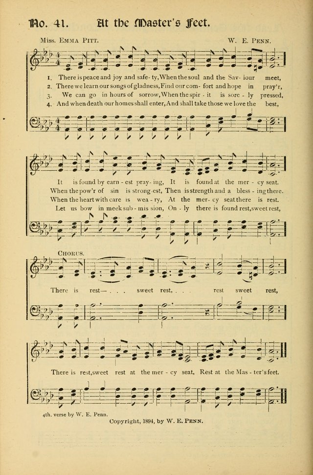 Display Title: At the Master's FeetFirst Line: There is peace and joy and safetyTune Title: [There is peace and joy and safety]Author: Miss Emma PittDate: 1900