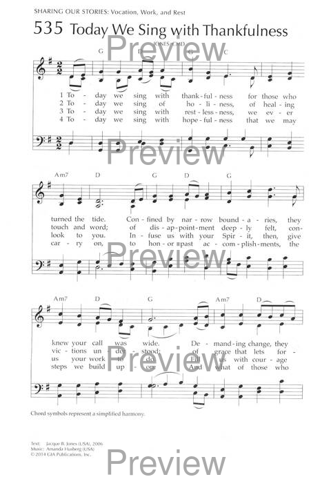Display Title: Today We Sing with Thankfulness First Line: Today we sing with thankfulness Tune Title: JONES Author: Jacque B. Jones Meter: CMD Scripture: Psalm 105; 2 Corinthians 5:18-21; Hebrews 11 Date: 2020 Subject: All Saints’ Day | ; Church Leadership | ; Funeral / Memorial Service | ; Justice | ; Ministry | ; Ordination | ; Thanksgiving | ; Vocation |