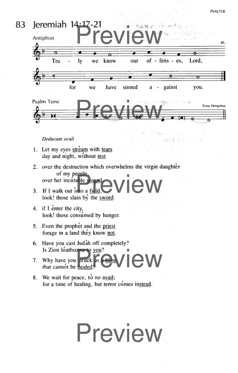 Antiphonal response to chanting of Jeremiah 14, Psalm tone and Gelineau tone included