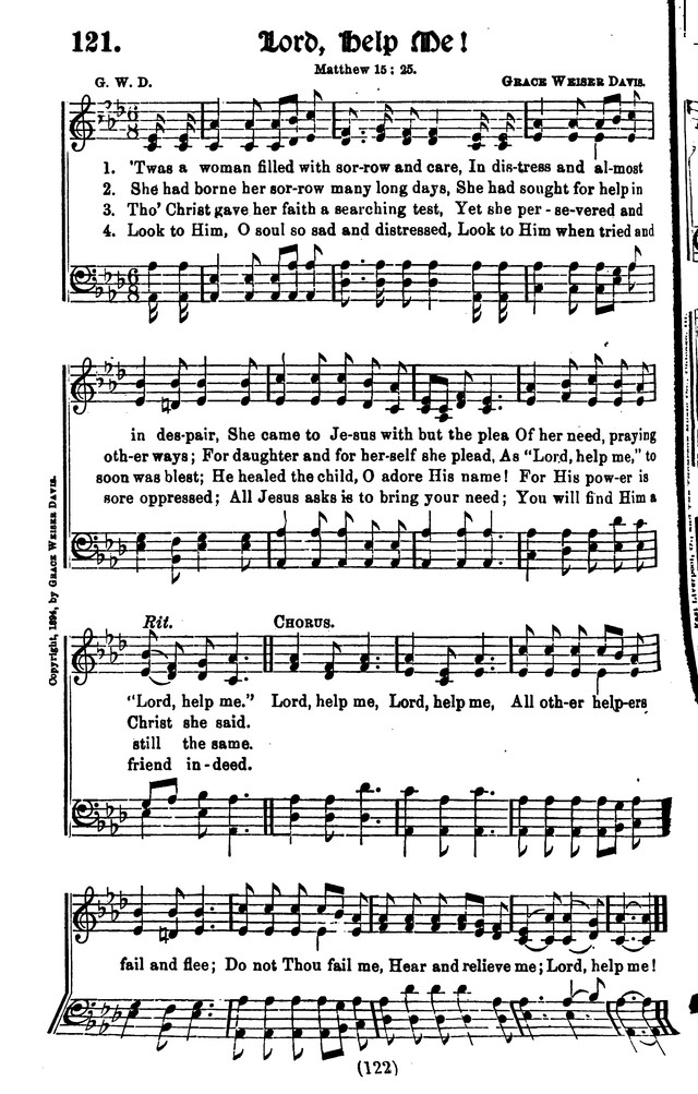 Display Title: Lord, Help Me! First Line: 'Twas a woman filled with sorrow and care Tune Title: ['Twas a woman filled with sorrow and care] Author: G. W. D. Scripture: Matthew 15:25 Date: 1894
