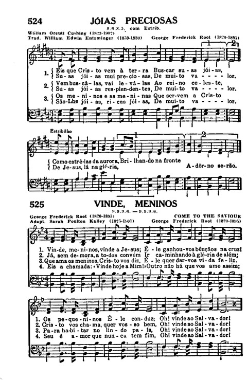 Display Title: VINDE, MENINOSFirst Line: Vinde, meninos, vinde a Jesus!Tune Title: COME TO THE SAVIOURAuthor: George Frederick Root (1820-1895); Sarah Poulton Kalley (1825-1907)Date: 1999